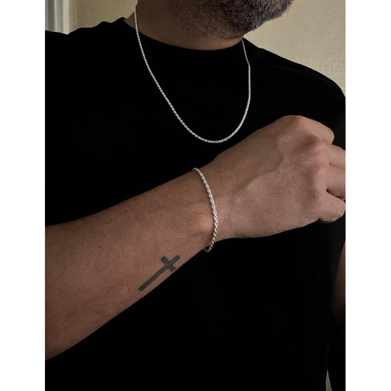 Conjunto cadena Turbillon 60cmx2,3mm + Pulsera Turbillon 19,5cmx2,3mm, Hombre, Plata Italiana ley 925 (925 ITALY)