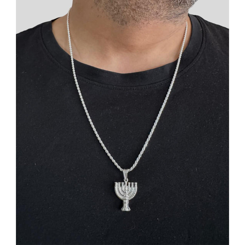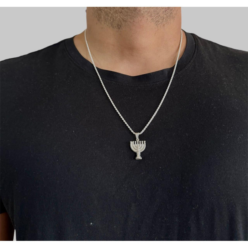 El colgante Menorá es una joya que representa el candelabro de siete brazos, un símbolo antiguo y sagrado del judaísmo. La Menorá fue utilizada en el Templo de Jerusalén y simboliza la luz divina y la sabiduría. Su diseño representa la conexión entre el mundo espiritual y el terrenal, y es un emblema de fe, iluminación y esperanza. Los colgantes con este símbolo suelen ser de gran significado religioso y espiritual para quienes lo portan.
